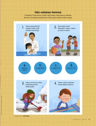 Presidentti Oaks kertoi meille neljä tapaa, joilla Jeesus valaisee tiemme. Etsi pyhien kirjoitusten kohta, joka vastaa kutakin tapaa.