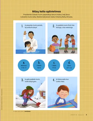 Prezidentas Ouksas mums papasakojo keturis būdus, kaip Jėzus nušviečia mums kelią. Raskite kiekvienam būdui tinkamą Raštų ištrauką.