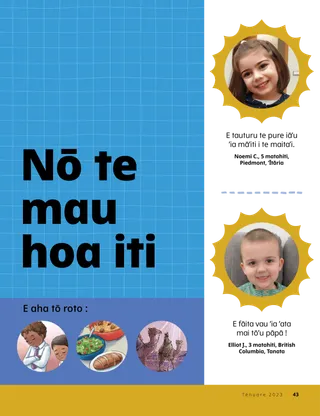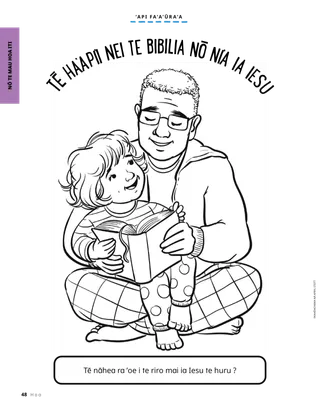 Tēnuare 2023 E te mau hoa hereTai’o i te hō’ē parau nō ni’a i te pe’e-’āmui-ra’a ia Iesu. Mau hoa pāpa’i rata’A tai’o i te tahi mau rata nā tō tātou mau hoa nā te ao ato’a nei ! Dallin H. Oaks’O Iesu tō tātou māramaramaTai’o i te hō’ē parau a te peresideni Dallin H. Oaks nō ni’a ia Iesu Mesia. Richard M. Romney’Ua māniania roa !E mea māniania roa te fare o Luka, tē ’ite nei rā ’oia i te hau i roto ia Iesu Mesia. Mai, pe’e mai ’Ātivite Mai, pe’e mai’A fa’a’ohipa i teie mau ’ātivite nō te tuatāpapa i te Mai, pe’e mai ’e tō ’outou ’utuāfare. Te tere i Aiphiti’A pe’e i te ’ē’a ta’aminomino nō te tauturu ia Maria, ia Iosepha ’e ia Iesu, ’ia ’ite mai i tō rātou ’ē’a i Aiphiti. E fa’anahora’a nō’u’A rave i teie ’ohipa nō te ha’api’i mai nō ni’a i tō ’oe ’ē’a nō te fafaura’a. Nāhea Siedeh i te rirora’a ’ei ta’ata itoito’Ia fifi ana’e Siedah i te fare ha’api’ira’a, e ani ’oia i te hō’ē ha’amaita’ira’a autahu’ara’a, e tauturu te reira iāna i tōna mana’o hau ’e te itoito. ’A ’imi mai !E nehenehe ānei ’oe e ’imi i te mau tao’a i hunahia i roto i te hōho’a ? Tē nāhea ra ’oe i te pe’e ia Iesu ?’A fa’a’ī i teie ’api parau ’e ’a hāpono i te reira i te Hoa nō te fa’a’ite mai e nāhea ’oe i te pe’e ia Iesu ! Pe’e ia Iesu i PeretāneFārerei ia Lucia, Vivie ’e Zac mai Peretāne mai ’e hi’o tē nāhea ra rātou i te pe’e ia Iesu. ’Ia ora na mai Peretāne atu !Haere i te hō’ē tere nō te ha’api’i i te parau nō Peretāne ! Susan H. PorterTauturu i te ’ohipa a te Metua i te ao raTai’o i te parau a te tuahine Susan H. Porter nō ni’a i te tauturura’a i te ’ohipa a te Metua i te ao ra. E ’ā’amu nō te auhoara’a’A fa’a’ī i te mau vāhi ’uo’uo nō te pāpa’i i tā ’outou iho ’ā’amu nō ni’a i te auhoara’a. « ’A pure mai, e Helamán »’Ua ha’amau Helamán i te hō’ē hi’ora’a maita’i nō tōna mau hoa nā roto i te purera’a nō te tāmā’ara’a i te fare ha’api’ira’a. Mana’o māramaramaE hōho’a pia ma te hō’ē parau : « ’O Iesu te māramarama mau. » Matthew J. Neeley ’e Nola P. NeeleyIesu tō’u māramaHa’api’i i te ha’uti i te hō’ē pehe fa’a’ōhie nō « Iesu tō’u mārama. » E nehenehe au e tai’o i te Faufa’a ’ĀpīE tai’o i te mau ’īrava o te Faufa’a ’Āpī nō te hepetoma tāta’itahi, ’e i muri iho e fa’a’ū i te mau vāhi tū’ati. Haru i te i’aE nehenehe ānei ’oe e ’imi i te mau tao’a i hunahia i roto i te hōho’a ? Te pe’e-’āmui-ra’a ia IesuE ’āhuera’a nō te fa’ahitira’a parau a te mau tamari’i ’ati a’e i te ao nei. Jane McBrideHa’amana’o nā muri ia Māmā’ūE mea ’aromo’e ia Māmā’ū te mau mea e rave rahi, tē ha’api’i nei rā Mari ’ia fa’a’oroma’i iāna, ’e ’ia fa’aro’o maita’i i tāna mau ’ā’amu. Margo ’e Paolo’A fārerei ia Margo ’e Paolo ’e tō rāua ’utuāfare i Peretīria ! M. Russell BallardNāhea tō ’outou ’utuāfare e tauturu ai te tahi i te tahi ?Tai’o i te hō’ē parau nā te peresideni M. Russell Ballard nō ni’a i te tauturura’a i tō ’outou ’utuāfare. Nō te mau tamari’i pa’ari Nō te mau tamari’i pa’ariUpo’o parau rahi nō te tuha’a Nō te mau tamari’i pa’ari Sandra EdwardsMōrī, tāviri hōho’a, tāvini !I roto i te pararera’a ma’i pe’e COVID-19, ’ua hāmani Antonella ’e Mariana i te mau video Mai, pe’e mai nā roto i te reo pāniora. E aha tā ’oe e mana’o ra ?Tāpūpū i teie tāreta ’e tai’o i te mau ’īrava pāpa’ira’a mo’a i te mau taime ato’a e hina’aro ’oe i te pūai hau atu. Ha’uti mā’imira’a ha’amaita’ira’a’A rave i teie ha’uti mā’imira’a ha’amaita’ira’a ’ei tauturura’a ia ’oe ’ia māuruuru i te mau mea tā te Metua i te ao ra i hōro’a nā ’oe. Mikaela WilkinsTi’a nō IesuTē fa’aineine ra David iāna, ’ia ti’a ’oia nō Iesu i te taime e ’ōpere ’oia i te ’ōro’a. Fruean P.’Imi i tā’u mau tārēni’A tai’o i te parau nō Fruean P., ’ua nāhea ’oia i te fa’ahotura’a i tāna mau tārēni nā roto i te fa’anahora’a a te mau tamari’i ’e te feiā ’āpī. Nō te mau hoa iti Nō te mau hoa itiFārerei i te tahi mau hoa na’ina’i nā te ao ato’a nei. E nehenehe tā’u e pe’e i te hi’ora’a o Iesu maoti te pureHa’api’i nāhea ’oe e pe’e ai ia Iesu maoti te pure. Tao’a hōro’a nā IesuTai’o i te ’ā’amu nō te ’āfa’ira’a mai nā feiā pa’ari i te tao’a hōro’a nā Iesu Mesia. Tē ha’api’i nei te Bibilia nō ni’a ia IesuHa’api’i i tā ’outou mau tamari’i ri’i ma te ’api fa’a’ūra’a tei fa’atumuhia i ni’a i te ’evanelia. Te parau poro’i nō teie ’āva’e, ’oia ho’i, « Tē ha’api’i nei te Bibilia nō ni’a ia Iesu. » Mau ’ohipa Mai, pe’e mai e rave nō te tamari’i ri’i’A fa’a’ohipa i teie mau ’ohipa e rave nō te tuatāpapa i te Mai, pe’e mai ’e tā ’outou mau tamari’i ri’i. E te mau metuaTai’o i te tahi parau nō te mau metua nō ni’a i te ’itera’a i te hau i roto i te Mesia.
