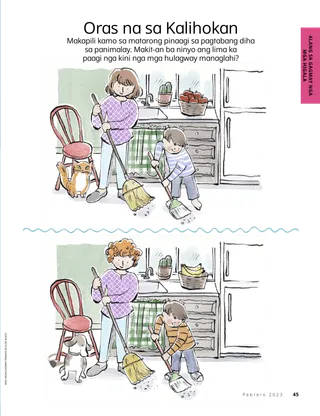 Makapili kamo sa matarong pinaagi sa pagtabang diha sa panimalay. Makit-an ba ninyo ang lima ka paagi nga kini nga mga hulagway managlahi?