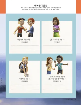 예수 그리스도를 따르면 힘든 시기에도 축복을 받아요. 마태복음 5장에서 예수님께서 우리에게 무엇을 약속하셨는지 읽고 빈칸을 채워 보세요.