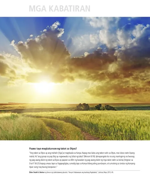 Agosto 2015 Mga Ideya para sa Family Home Evening Manindigan Bilang Isang Liwanag Thomas S. MonsonManindigan Bilang Isang Liwanag Gabay na Liwanag Paningningin ang Iyong Liwanag Mga Banal na Katangian ni Jesucristo—Maamo at Mapagpakumbaba Notebook ng Kumperensya ng Abril 2015 Notebook ng Kumperensya ng Abril 2015 Binabago ng mga Handog-ayuno ang mga Puso Isang Sagradong Sabbath Naniniwala Kami sa Pagiging Mapagpakumbaba Itinalagang mga Bagong Lider sa Area Susan L. and C. Terry WarnerIsang Maluwalhating Pagkikitang Muli Jeff B. MarlerAng Bisa ng Home Teaching Becky HeinerAng Bintana sa May Pool Russell M. NelsonMga Disipulo at ang Pagtatanggol sa Usapin ng Kasal Allan F. PackerMga Permanenteng Pamantayan ng Ama sa Langit Bruce C. HafenAng Pagpapahayag tungkol sa Pamilya: Paglagpas sa Kalituhang Dulot ng Kultura Mga Lalaking Banal sa mga Huling Araw at Diborsyo S. Brent ScharmanMga Lalaking Banal sa mga Huling Araw at Diborsyo David PaulAng mga Sugat na Dulot ng Diborsyo Mga Tinig ng mga Banal sa mga Huling Araw Dee JepsonSaan ang Simbahan Ninyo? Susana Magdalena Gos de MorresiIsang Panalangin sa Family History Center Gayle Y. BrandvoldDalhin Mo Siya sa Ospital! Joni HiltonMakakakuha Ba Ako ng Aklat ni Mormon? Mga Young Adult Hillary OlsenPagtitiis: Higit pa sa Paghihintay Gelzcke Felix NogueiraMisyon o Pera? Mga Kabataan David A. BednarPunuin ang Mundo ng Mensahe ng Ebanghelyo sa pamamagitan ng Social Media Mga Tanong at mga Sagot Mindy Anne LeavittResipe para sa isang Masayang Pamilya Ang Sabbath ay Kaluguran Mikaeli Duarte da SilvaPaghihintay nang May Pananampalataya Mga Bata Jan PinboroughPakikipagkarera ni Shelly Katherine NelsonSaklolo! May Nakikipagdiborsyo Amie Jane LeavittTag, Taya Ka! Ang Tama’y Ipaglaban George L. Taylor and A. C. SmythMaglakas-loob, Tama’y Gawin Amanda MichaelisIsang Mahirap na Pagpapasiya Quentin L. CookPaano ako mananatiling malaya? Maaari Kang Magsisi at Magpatawad Jane McBride ChoateSi Clara at ang Primary Program Jean BinghamMuling Binuhay ni Jesus si Lazaro Parley P. PrattItinuro Niya sa Akin ang Makalangit na Orden ng Kawalang-Hanggan David A. BednarMga Kabatiran