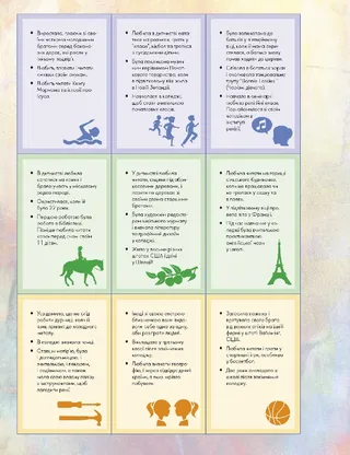 Любила читати і грати у спортивні ігри, особливо у баскетбол.