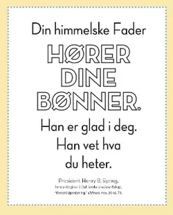 September 2015 Ideer til familiens hjemmeaften Familier og bønn Henry B. EyringFamilier og bønn Arbeid med bønn En påminnelse om bønn Jesu Kristi guddommelige egenskaper: Mektig og full av herlighet Notater fra konferansen, april 2015 Notater fra konferansen, april 2015 Guds nåde er tilgjengelig for alle Tro på ekteskapet Name withheldBønn: En mors gave M. Russell BallardHerren trenger deg nå! Lori Cluff SchadeVi kan velsigne våre barn ved å forbedre vårt ekteskap Bruce C. HafenTemplet og ekteskapets naturlige orden Per G. MalmKirkens håndbøker – tingenes skriftlige orden Norman C. HillAldri alene i Sierra Leone Sagt av siste-dagers-hellige Christina WadleyStrandet i Limon Michael HendricksDet jeg trengte å lære Desire Koami GbedjangniSåing på søndag June FossJeg begynte å be for Ruth Unge voksne Jeg føler kraften i Jesu Kristi forsoning når… Lisa LópezEn kultur av tro i Guatemala Ungdom D. Todd ChristoffersonHvordan vi virkelig omvender oss Plakat: Søk det levende vann Melvin RondillaBli eller adlyde? David DicksonDu kan forandre deg Ikke av verden Rett på sak Hva betyr den åttende trosartikkel når den sier: “Vi tror at Bibelen er Guds ord så langt som den er riktig oversatt”? Jeg er gutt, og jeg vil oppfordre jenter til å kle seg mer sømmelig. Men hvordan gjør jeg det uten å virke uhøflig? Seminar er verdt det! Seminar er verdt det! Maria Mahonri-Yggrazil AndacaSkriftene har gjort en forskjell hos meg “Jeg har funnet ut” Vår spalte Barn Den fortapte sønn Våre kvinnelige ledere Neil L. AndersenEn glimrende idé Jill HackingLindsays familiepuslespill Carolyn ColtonSpørrelek om familiehistorier Dallin H. OaksHvordan kan jeg vise vennlighet mot andre? Amie Jane LeavittGlad for å kunne hjelpe Erin SandersonNadverden: En påminnelse om Jesus Francislaine Urquidi Farfan VasserEn ny følelse Lorenzo SnowEt besøk fra Frelseren Innsikt