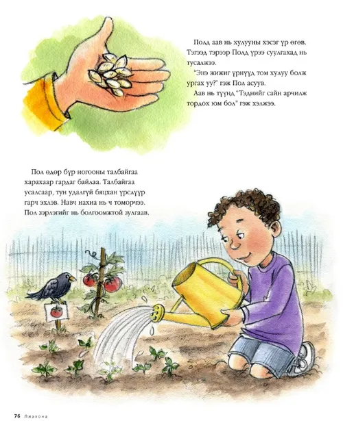 Пол өдөр бүр ногооны талбайгаа харахаар гардаг байлаа. Талбайгаа усалсаар, тун удалгүй бяцхан үрслүүр гарч эхлэв. Навч нахиа нь ч томорчээ. Пол зэрлэгийг нь болгоомжтой зулгаав.
