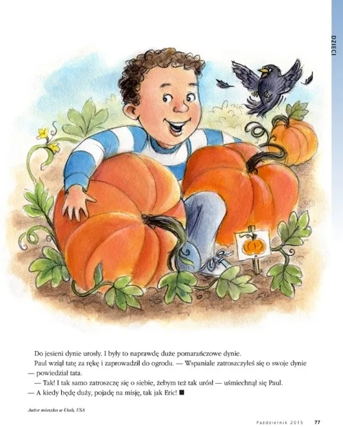 Paul wziął tatę za rękę i zaprowadził do ogrodu. — Wspaniale zatroszczyłeś się o swoje dynie — powiedział tata.