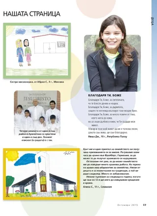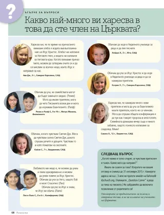October 2015 Идеи за семейни домашни вечери Стигнете до финала с все още горяща факла Dieter F. UchtdorfСтигнете до финала с все още горяща факла Зареди факлата си: 30-дневен тест Направете факлата си да гори по-силно Божествените качества на Исус Христос: изпълнени с милосърдие и любов Brooke BartonВършех ли достатъчно? Rachel CoxТикви или пъпеши? Richard E. Turley Jr., Robin S. Jensen, and Mark Ashurst-McGeeДжозеф гледачът Norman C. HillДуми, които да променят света ни Carol F. McConkieДа научим младежите как да ръководят по начина на Спасителя Cynthia CollierОтпразнуване на семейната домашна вечер Robert D. HalesПланът на спасение: свещена съкровищница с познание, което да ни напътства Гласове на светии от последните дни Kelly LaingКолко важно може да е това? Sandy HowsonСестра Спафорд говореше на мен Amber CheneyНе знаех защо съм там John K. MuarorПътуването ми с молитва до Ротума Пълнолетни младежи Randall L. RiddДа живееш с истинско намерение Младежи Dallin H. OaksВъзстановяване от капана на порнографията На правилното място в правилния момент На правилното място в правилния момент Fátima Rocha GutiérrezФишът за неправилно паркиране Chen Ching Chuan Телефонно обаждане в точния момент Плакат: Твоята книга на живота Битие 1:26–27 Peng HuaМоето търсене на истината Gisela GuthierУдивителните млади мъже и млади жени в Писанията Въпроси и отговори Деца Marissa WiddisonПечелившо решение Какво най-много ви харесва в това да сте член на Църквата? Нашата страница Erin SandersonПетър, Корнилий и ангелът Kimberly ReidДа намериш помощ О, не! Ами сега? Тиквите на Пол Ray GoldrupТиквите на Пол Тиквите Jan Pinborough and Michael F. MoodyЕдно на милион Henry B. EyringПътят към безопасността Linda K. BurtonПрозрения