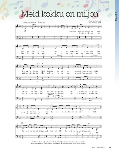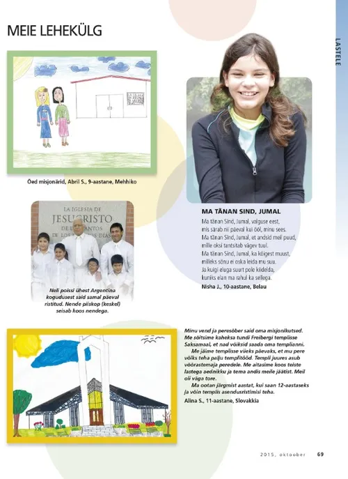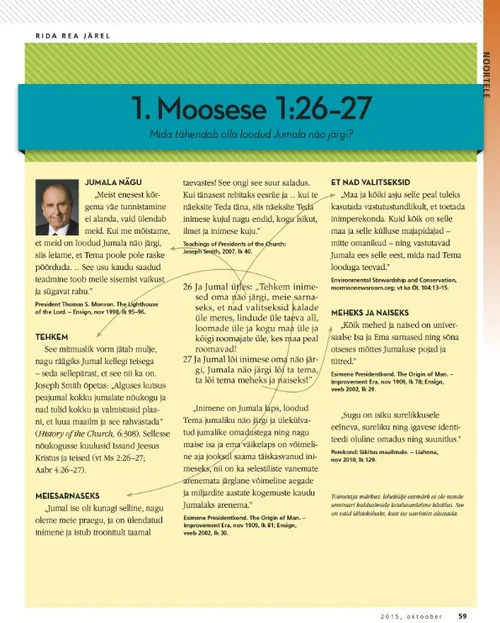 2015, oktoober Soovitusi pereõhtu pidamiseks Jõudke finišisse põleva tõrvikuga Dieter F. UchtdorfJõudke finišisse põleva tõrvikuga Suurenda oma tõrviku leeki: 30-päevane prooviaeg Pange oma tõrvik eredamalt särama Jeesuse Kristuse jumalikud omadused: täidetud ligimesearmastusega Brooke BartonKas ma tegin piisavalt? Rachel CoxKõrvitsad või melonid? Richard E. Turley Jr., Robin S. Jensen, and Mark Ashurst-McGeeNägija Joseph Norman C. HillSõnad, mis muudavad meie maailma Carol F. McConkieÕpetame noortele kuidas juhtida Päästja viisil Cynthia CollierPereõhtu tähistamine Robert D. HalesPäästmisplaan: püha teadmiste aare meie juhtimiseks Viimse aja pühade hääled Kelly LaingKui tähtis see olla võib? Sandy HowsonÕde Spafford kõneles minuga Amber CheneyMa ei teadnud, miks ma seal olin John K. MuarorPalvetades endale tee Rotumale Noortele täiskasvanutele Randall L. RiddElada tõsise kavatsusega Noortele Dallin H. OaksPornograafialõksust pääsemine Õigel ajal õiges kohas Õigel ajal õiges kohas Fátima Rocha GutiérrezParkimispilet Chen Ching Chuan Õigeaegne telefonikõne Plakat: Teie eluraamat 1. Moosese 1:26–27 Peng HuaMinu tõeotsing Gisela GuthierImetlusväärsed noored mehed ja noored naised pühakirjades Küsimused ja vastused Lapsed Marissa WiddisonVõidukas otsus Mis sulle Kiriku liikmeks olemise juures kõige enam meeldib? Meie lehekülg Erin SandersonPeetrus, Korneelius ja ingel Kimberly ReidAbi leidmine Oo, ei! Mis nüüd saab? Pauli kõrvitsad Ray GoldrupPauli kõrvitsad Kõrvitsapõld Jan Pinborough and Michael F. MoodyMeid kokku on miljon Henry B. EyringTee varjupaika Linda K. Burtontähelepanekud
