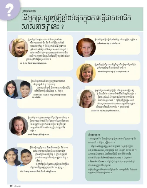 ខែ តុលា ឆ្នាំ ២០១៥ គំនិតទាំងឡាយសម្រាប់រាត្រីជួបជុំក្រុមគ្រួសារ សូមទៅដល់ទីផ្តាច់ព្រ័ត្រដោយគប់ភ្លើងរបស់អ្នកនៅតែឆេះ Dieter F. Uchtdorfសូមទៅដល់ទីផ្តាច់ព្រ័ត្រដោយគប់ភ្លើងរបស់អ្នកនៅតែឆេះ បន្ថែមប្រេងដល់គប់ភ្លើងរបស់អ្នក ៖ ការសាកល្បងរយៈពេល ៣០ ថ្ងៃ ចូរធ្វើឲ្យគប់ភ្លើងរបស់អ្នកកាន់តែឆេះភ្លឺ ឡើង លក្ខណៈសម្បត្តិដ៏ទេវភាពរបស់ព្រះយេស៊ូវគ្រីស្ទ ៖ ពេញដោយសេចក្តីសប្បុរស និង សេចក្តីស្រឡាញ់ Brooke Bartonតើខ្ញុំបានធ្វើគ្រប់គ្រាន់ហើយឬ ? Rachel Coxតើយកផ្លែល្ពៅ ឬ ផ្លែត្រសក់ស្រូវ ? Richard E. Turley Jr., Robin S. Jensen, and Mark Ashurst-McGeeយ៉ូសែប អ្នកមើលឆុត Norman C. Hillព្រះបន្ទូលដែលផ្លាស់ប្តូរពិភពលោករបស់យើង Carol F. McConkieបង្រៀនយុវវ័យពីរបៀបដឹកនាំតាមមាគ៌ារបស់ព្រះអង្គសង្គ្រោះ Cynthia Collierការប្រារព្ធធ្វើរាត្រីជួបជុំក្រុមគ្រួសារ Robert D. Halesផែនការនៃសេចក្តីសង្គ្រោះ ៖ រតនៈសម្បត្តិដ៏ពិសិដ្ឋនៃចំណេះដឹងដើម្បី នាំ ផ្លូវយើង សំឡេងពួកបរិសុទ្ធថ្ងៃចុងក្រោយ Kelly Laingតើការណ៍នេះសំខាន់ប៉ុណ្ណាទៅ ? Sandy Howsonស៊ីស្ទើរ ស្ពាហ្វត កំពុងមានប្រសាសន៍មកកាន់ខ្ញុំ Amber Cheneyខ្ញុំមិនបានដឹងពីមូលហេតុដែលខ្ញុំនៅទីនោះឡើយ John K. Muarorការអធិស្ឋានរបស់ខ្ញុំទៅកាន់កោះរ៉ូតូម៉ា យុវមជ្ឈិមវ័យ Randall L. Riddការរស់នៅដោយស្មោះអស់ពីចិត្ត យុវវ័យ Dallin H. Oaksការជាសះស្បើយពីអន្ទាក់នៃការណ៍អាសគ្រាម នៅកន្លែងដ៏ត្រឹមត្រូវ ក្នុង ពេលវេលាដ៏ត្រឹមត្រូវ នៅកន្លែងដ៏ត្រឹមត្រូវ ក្នុង ពេលវេលាដ៏ត្រឹមត្រូវ Fátima Rocha Gutiérrezសំបុត្រចំណត Chen Ching Chuanទូរសព្ទដែលហៅមកចំពេល ប័ណ្ណប្រកាស ៖សៀវភៅជីវិតរបស់អ្នក លោកុប្បត្តិ ១:២៦–២៧ Peng Huaការស្វែងរកសេចក្តីពិតរបស់ខ្ញុំ Gisela Guthierយុវជន និង យុវនារីដ៏អស្ចារ្យនៅក្នុងព្រះគម្ពីរ សំណួរ និង ចម្លើយ កុមារ Marissa Widdisonការសម្រេចចិត្តដ៏មានជ័យជំនះមួយ តើអ្នកស្រឡាញ់អ្វីខ្លាំងបំផុតក្នុងការធ្វើជាសមាជិកសាសនាចក្រនេះ ? ទំព័ររបស់យើង Erin Sandersonពេត្រុស កូនេលាស និង ទេវតា Kimberly Reidស្វែងរកជំនួយ អូ៎ ទេ ! ឥឡូវធ្វើម៉េចទៅ ? ផ្លែល្ពៅរបស់ផល Ray Goldrupផ្លែល្ពៅរបស់ផល ដីដាំល្ពៅ Jan Pinborough and Michael F. Moodyម្នាក់ក្នុងមួយលាននាក់ Henry B. Eyringវិថីឆ្ពោះទៅទីសុវត្ថិភាព Linda K. Burtonការយល់ដឹង