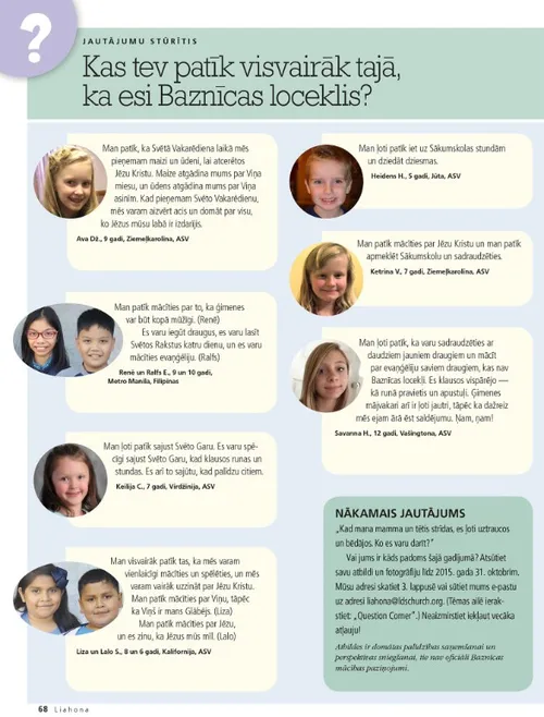 2015. gada oktobris Idejas ģimenes mājvakaram Finišēt ar joprojām degošu lāpu Dieter F. UchtdorfFinišēt ar joprojām degošu lāpu Piepildiet savu lāpu: 30 dienu izaicinājums Lai jūsu lāpas mirdz spožāk! Jēzus Kristus dievišķās īpašības: pilns žēlsirdības un mīlestības Brooke BartonVai es daru pietiekami daudz? Rachel CoxĶirbjus vai melones? Richard E. Turley Jr., Robin S. Jensen, and Mark Ashurst-McGeeDžozefs — gaišreģis Norman C. HillVārdi, lai izmainītu mūsu pasauli Carol F. McConkieMācīt jauniešiem, kā vadīt Glābēja veidā Cynthia CollierĢimenes mājvakara svinēšana Robert D. HalesGlābšanas iecere — svēts zināšanu dārgums mūsu vadībai Pēdējo dienu svēto balsis Kelly LaingCik svarīgi tas varētu būt? Sandy HowsonMāsa Spaforda sacīja to man Amber CheneyEs nezināju, kāpēc tur biju John K. MuarorEs lūdzu Dievu, lai nokļūtu Rotumā Jaunie pieaugušie Randall L. RiddDzīvot ar patiesu nolūku Jaunieši Dallin H. OaksIzkļūšana no pornogrāfijas lamatām Īstajā vietā — īstajā laikā Īstajā vietā — īstajā laikā Fátima Rocha GutiérrezAutostāvvietas biļete Chen Ching Chuan Telefona zvans tieši laikā Plakāts: Tava dzīves grāmata 1. Mozus 1:26–27 Peng HuaMani patiesības meklējumi Gisela GuthierApbrīnojami jaunie vīrieši un jaunās sievietes Svētajos Rakstos Jautājumi un atbildes Bērni Marissa WiddisonUzvaras lēmums Kas tev patīk visvairāk tajā, ka esi Baznīcas loceklis? Mūsu lappuse Erin SandersonPēteris, Kornēlijs un eņģelis Kimberly ReidPalīdzības meklēšana Ak, nē! Ko nu? Paula ķirbji Ray GoldrupPaula ķirbji Ķirbju dobe Jan Pinborough and Michael F. MoodyNo miljona — viens! Henry B. EyringCeļš — drošībā Linda K. BurtonAtziņas