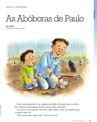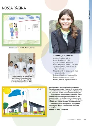 Outubro de 2015 Ideias para a Noite Familiar Chegar ao Fim com a Tocha Acesa Dieter F. UchtdorfChegar ao Fim com a Tocha Acesa Alimente Sua Tocha: A Prova de 30 Dias Faça Sua Tocha Brilhar Mais Atributos Divinos de Jesus Cristo: Cheio de Caridade e Amor Brooke BartonEu Estava Fazendo o Suficiente? Rachel CoxAbóboras ou Melões? Richard E. Turley Jr., Robin S. Jensen, and Mark Ashurst-McGeeJoseph, o Vidente Norman C. HillPalavras para Mudar Nosso Mundo Carol F. McConkieEnsinar os Jovens a Liderar à Maneira do Salvador Cynthia CollierCelebrar a Noite Familiar Robert D. HalesO Plano de Salvação: Um Tesouro Sagrado de Conhecimento para Guiar-nos Vozes da Igreja Kelly LaingQue Importância Teria Isso? Sandy HowsonA Irmã Spafford Estava Falando para Mim Amber CheneyEu Não Sabia Por Que Estava Ali John K. MuarorOrei para Chegar a Rotuma Jovens Adultos Randall L. RiddViver com Real Intenção Jovens Dallin H. OaksRecuperar-se da Armadilha da Pornografia No Lugar Certo, no Momento Certo No Lugar Certo, no Momento Certo Fátima Rocha GutiérrezO Bilhete do Estacionamento Chen Ching Chuan Um Telefonema Oportuno Pôster: Seu Livro da Vida Gênesis 1:26–27 Peng HuaMinha Busca da Verdade Gisela GuthierRapazes e Moças Extraordinários das Escrituras Perguntas e Respostas Crianças Marissa WiddisonUma Decisão Vencedora O que você mais gosta em relação a ser membro da Igreja? Nossa Página Erin SandersonPedro, Cornélio e o Anjo Kimberly ReidEncontrar Ajuda Ah, não! E Agora? As Abóboras de Paulo Ray GoldrupAs Abóboras de Paulo O Canteiro de Abóboras Jan Pinborough and Michael F. MoodyUma em um Milhão Henry B. EyringO Caminho para a Segurança Linda K. BurtonPara Refletir