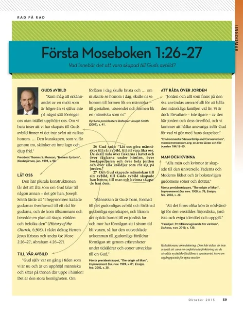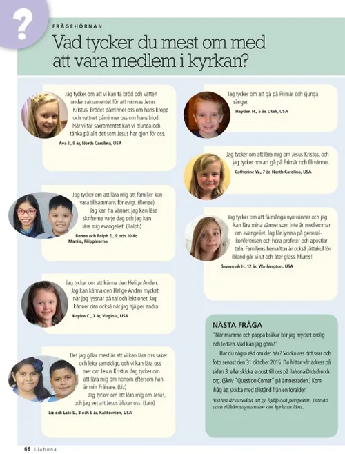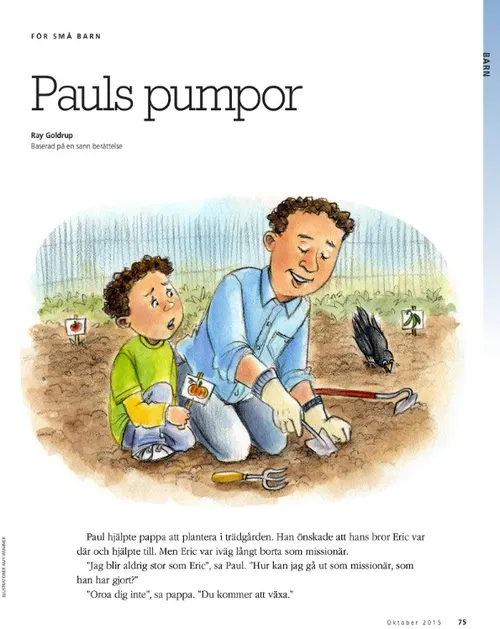 Oktober 2015 Förslag till familjens hemafton Gå i mål med facklan brinnande Dieter F. UchtdorfGå i mål med facklan brinnande Håll facklan brinnande: 30-dagarsprovet Få din fackla att lysa starkare Jesu Kristi gudomliga egenskaper: Fylld av barmhärtighet och kärlek Brooke BartonGjorde jag tillräckligt? Rachel CoxPumpor eller meloner? Richard E. Turley Jr., Robin S. Jensen, and Mark Ashurst-McGeeJosef Siaren Norman C. HillOrd som förändrar vår värld Carol F. McConkieLär ungdomarna att leda på Frälsarens sätt Cynthia CollierVi firar familjens hemafton Robert D. HalesFrälsningsplanen: En helig skatt av vägledande kunskap Sista dagars heliga berättar Kelly LaingHur viktigt kan det här vara? Sandy HowsonSyster Spafford talade till mig Amber CheneyJag visste inte varför jag var där John K. MuarorJag bad hela vägen till Rotuma Unga vuxna Randall L. RiddAtt leva med ärligt uppsåt Ungdomar Dallin H. OaksÅterhämtning från pornografins fälla På rätt plats vid rätt tidpunkt På rätt plats vid rätt tidpunkt Fátima Rocha GutiérrezParkeringsboten Chen Ching Chuan Ett lägligt telefonsamtal Affisch: Din egen Livets bok Första Moseboken 1:26–27 Peng HuaMitt sökande efter sanning Gisela GuthierBeundransvärda unga män och unga kvinnor i skrifterna Frågor och svar Barn Marissa WiddisonEtt vinnande beslut Vad tycker du mest om med att vara medlem i kyrkan? Vår sida Erin SandersonPetrus, Kornelius och ängeln Kimberly ReidTate fick hjälp Åh nej! Vad gör jag nu? Pauls pumpor Ray GoldrupPauls pumpor Pumpalandet Jan Pinborough and Michael F. MoodyEn på miljonen! Henry B. EyringVägen till trygghet Linda K. BurtonInsikter