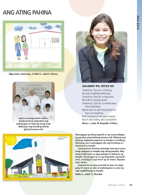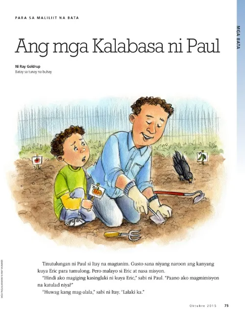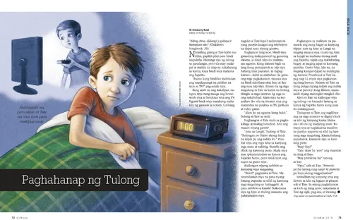 Oktubre 2015 Mga Ideya para sa Family Home Evening Matapos na May Sindi Pa ang Iyong Sulo Dieter F. UchtdorfMatapos na May Sindi Pa ang Iyong Sulo Pagningasin ang Iyong Sulo: 30-Araw na Pagsubok Gawing Mas Maningning ang Iyong Sulo Mga Banal na Katangian ni Jesucristo: Puspos ng Pag-ibig sa Kapwa-Tao at Pagmamahal Brooke BartonSapat Ba ang Ginagawa Ko? Rachel CoxMga Kalabasa o mga Milon? Richard E. Turley Jr., Robin S. Jensen, and Mark Ashurst-McGeeSi Joseph na Tagakita Norman C. HillMga Salitang Magpapabago sa Aming Mundo Carol F. McConkiePagtuturo sa mga Kabataan Kung Paano Mamuno sa Paraan ng Tagapagligtas Cynthia CollierPagdiriwang ng Family Home Evening Robert D. HalesAng Plano ng Kaligtasan: Isang Sagradong Yaman ng Kaalaman na Gagabay sa Atin Mga Tinig ng mga Banal sa mga Huling Araw Kelly LaingGaano Ba Ito Kahalaga? Sandy HowsonNagsasalita sa Akin si Sister Spafford Amber CheneyHindi ko Alam Kung Bakit Ako Naroon John K. MuarorPagdarasal Ko Papunta sa Rotuma Mga Young Adult Randall L. RiddPamumuhay nang May Tunay na Layunin Mga Kabataan Dallin H. OaksPaghulagpos mula sa Bitag ng Pornograpiya Nasa Tamang Lugar sa Tamang Panahon Nasa Tamang Lugar sa Tamang Panahon Fátima Rocha GutiérrezAng Parking Ticket Chen Ching Chuan Isang Tawag sa Telepono na Tamang-Tama ang Dating Poster: Ang Aklat ng Iyong Buhay Genesis 1:26–27 Peng HuaAng Paghahanap Ko sa Katotohanan Gisela GuthierKahanga-hangang mga Kabataang Lalaki at Babae sa mga Banal na Kasulatan Mga Tanong at mga Sagot Mga Bata Marissa WiddisonIsang Panalong Desisyon Ano ang pinakagusto mo sa pagiging miyembro ng Simbahan? Ang Ating Pahina Erin SandersonSi Pedro, si Cornelio, at ang Anghel Kimberly ReidPaghahanap ng Tulong Naku! Paano Na? Ang mga Kalabasa ni Paul Ray GoldrupAng mga Kalabasa ni Paul Ang Taniman ng Kalabasa Jan Pinborough and Michael F. MoodyKaiba sa Lahat Henry B. EyringAng Daan Tungo sa Kaligtasan Linda K. BurtonMga Kabatiran