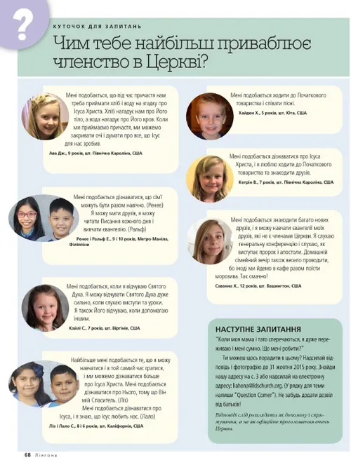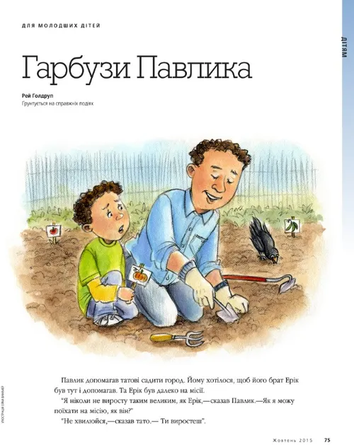 Жовтень 2015 Ідеї для домашнього сімейного вечора Добігти з палаючим факелом Dieter F. UchtdorfДобігти з палаючим факелом Наповни пальним свій факел: 30-денне випробування Зроби свій факел яскравішим Божественні якості Ісуса Христа: сповнений милосердя і любові Brooke BartonЧи роблю я достатньо? Rachel CoxГарбузи чи дині? Richard E. Turley Jr., Robin S. Jensen, and Mark Ashurst-McGeeДжозеф---провидець Norman C. HillСлова, які змінюють наш світ Carol F. McConkieНавчати молодь, як керувати у спосіб Спасителя Cynthia CollierСвяткування домашнього сімейного вечора Robert D. HalesПлан Спасіння: священний скарб знань, що скеровує нас Голоси святих останніх днів Kelly LaingНаскільки це важливо? Sandy HowsonСестра Спаффорд промовляла до мене Amber CheneyЯ не знала, чому я була там John K. MuarorМолитва про подорож до Ротуми Дорослій молоді Randall L. RiddЖити зі справжнім наміром Молоді Dallin H. OaksЯк вибратися з пастки порнографії У вірному місці у вірний час У вірному місці у вірний час Fátima Rocha GutiérrezПаркувальний жетон Chen Ching Chuan Вчасний телефонний дзвінок Плакат: Твоя книга життя Буття 1:26–27 Peng HuaМої пошуки істини Gisela GuthierДивовижні юнаки і дівчата з Писань Запитання і відповіді Дітям Marissa WiddisonПереможне рішення Чим тебе найбільш приваблює членство в Церкві? Наша сторінка Erin SandersonПетро, Корнилій та ангел Kimberly ReidУ пошуках допомоги Ой, ні! А що ж далі? Гарбузи Павлика Ray GoldrupГарбузи Павлика Гарбузова ділянка Jan Pinborough and Michael F. MoodyОдин з мільйона! Henry B. EyringШлях до безпеки Linda K. BurtonНатхненні думки