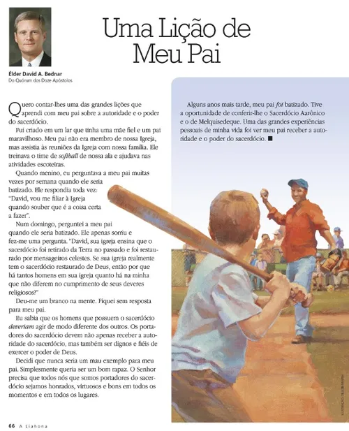 Num domingo, perguntei a meu pai quando ele seria batizado. Ele apenas sorriu e fez-me uma pergunta. “David, sua igreja ensina que o sacerdócio foi retirado da Terra no passado e foi restaurado por mensageiros celestes. Se sua igreja realmente tem o sacerdócio restaurado de Deus, então por que há tantos homens em sua igreja quanto há na minha que não diferem no cumprimento de seus deveres religiosos?”