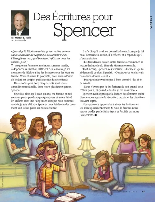 Lorsque ma femme et moi nous sommes mariés, Spencer W. Kimball (1895-1985) a encouragé les membres de l’Église à lire les Écritures tous les jours en famille. Voulant suivre le prophète, nous avons décidé de le faire en couple, puis avec nos futurs enfants.