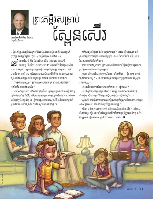 នៅពេលភរិយាខ្ញុំ និង ខ្ញុំបានរៀបការថ្មីថ្មោង ប្រធាន ស្ពែនស៊ើរ ដបុលយូ ឃឹមបឹល ( ១៨៩៥–១៩៨៥ ) បានលើកទឹកចិត្តសមាជិកសាសនាចក្រទាំងឡាយឲ្យអានព្រះគម្ពីររាល់ថ្ងៃជាមួយគ្រួសារពួកគេ ។ យើងចង់ធ្វើតាមព្យាការី ដូច្នេះយើងបានសម្រេចចិត្តថាយើងនឹងអានវាជាមួយគ្នាជាស្វាមីភរិយា និងក្រោយមកជាមួយកូនៗនាពេលអនាគតរបស់យើង ។