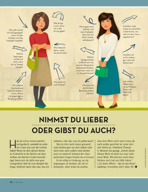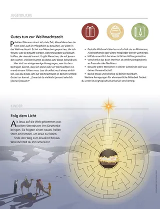 Dezember 2015 Anregungen für den Familienabend Nehmen wir uns Zeit für den Heiland Thomas S. MonsonNehmen wir uns Zeit für den Heiland Gutes tun zur Weihnachtszeit Folg dem Licht Göttliche Eigenschaften Jesu Christi: mitfühlend und gütig Brad AllredEin Geschenk des Lebens und der Liebe Boyd K. PackerEin Zeugnis vom Erlöser Jesus Christus David A. EdwardsJoseph Smith und das Buch Offenbarung Scott H. KnechtWie man die richtigen Fragen auf die rechte Weise stellt Marcus B. NashDer neue und immerwährende Bund Néstor Curbelo„Ich habe Gott ein Versprechen gegeben“ D. Todd ChristoffersonFrieden finden Stimmen von Heiligen der Letzten Tage Antonella TrevisanIm Laufschritt zum Tempel Joan Burton StottMein Weihnachtswunder Candice A. GroverSie hatte sich die Zeit genommen Robert HoffmanIch war nicht allein Stephanie H. OlsenWie die kleinen Münzen der Witwe Hannah EiselinWoher wussten sie von meiner Not? Junge Erwachsene Brittany Romanello CascoVorzeitig von Mission zurückgekehrt Justina McCandlessEine Zeugin Gottes in Deutschland Jugendliche President Dieter F. UchtdorfWie man erkennt, was Weihnachten wirklich bedeutet Keanu WilliamsDas Geschenk aus dem Trödelladen veränderte alles Matthew FlittonDer Neue Sie kannten Joseph Nimmst du lieber oder gibst du auch? Poster: Wer rastet, der rostet Ich bin Klassenpräsidentin bei den Jungen Damen, fühle mich dem aber nicht gewachsen. Wie kann ich in diese Führungsaufgabe hineinwachsen? Elder Jörg KlebingatWas ich als Neubekehrter gelernt habe Raisa MarcondesMein Fortschritt mit meinem Stammbaum Kinder Marcus B. NashSpencer und die heiligen Schriften David A. BednarWas mein Vater mich über das Priestertum gelehrt hat Figuren aus den heiligen Schriften Honney Thalia Cabel LosnoHeiligabend bei Familie Córdoba Heidi PoelmanPuzzleteile der Wiederherstellung Erin SandersonJesus Christus wird wiederkehren! Die Weihnachtsgeschichte President Howard W. HunterDas wahre Weihnachten Russell M. NelsonZum Nachdenken