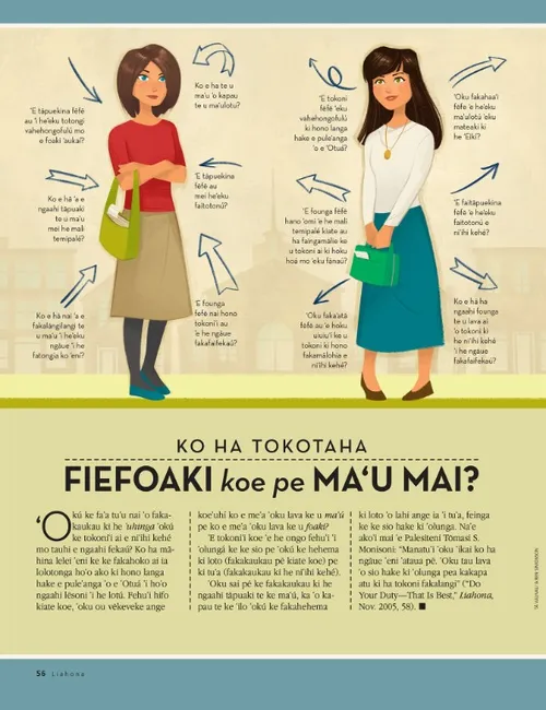 Tīsema 2015 Ngaahi Fakakaukau Maʻá e Efiafi Fakafāmili ʻi ʻApí Fakafaingamālieʻi ha Taimi moʻó e Fakamoʻuí Thomas S. MonsonFakafaingamālieʻi ha Taimi moʻó e Fakamoʻuí Ngaahi Founga ke Tokoni ai ʻi he Taimi-Kilisimasí Muimui ki he Māmá Ngaahi ʻUlungaanga Faka-ʻOtua ʻo Sīsū Kalaisí—Manavaʻofa mo Angaʻofa Brad AllredKo ha Meʻaʻofa ʻo e Moʻuí mo e ʻOfá Boyd K. PackerKo ha Fakamoʻoni ʻo e Fakamoʻui ko Sīsū Kalaisí David A. EdwardsSiosefa Sāmita mo e Tohi ʻo e Fakahaá Scott H. KnechtKo hono Fai ʻa e Ngaahi Fehuʻi Totonú ʻi he Founga Totonú Marcus B. NashKo e Fuakava Foʻou mo Taʻengatá Néstor Curbelo”Ne u Fai ha Tukupā ki he ʻOtuá” D. Todd ChristoffersonFiemālie Pē Ngaahi Leʻo ʻo e Kau Māʻoniʻoni ʻi he Ngaahi ʻAho Kimui Ní Antonella TrevisanKo e Lele ki he Temipalé Joan Burton StottKo ʻEku Mana Faka-Kilisimasí Candice A. GroverKo e Ngaahi Afo ʻo e Feilaulaú Robert HoffmanNaʻe ʻikai Ke u Tuenoa Stephanie H. OlsenKo e Foaki Fakaeonopooni ʻa ha Fefine Uitou Hannah EiselinNaʻe Founga Fēfē ʻEnau ʻIlo ʻEku Fie Maʻú? Kakai Lalahi Kei Talavoú Brittany Romanello CascoFoki Vave ki ʻApi mei he Ngāue Fakafaifekaú Justina McCandlessKo e Hoko ko ha Fakamoʻoni ʻi Siamane Toʻu Tupú President Dieter F. UchtdorfFounga ke Vakai ai ki he ʻUhinga Totonu ʻo e Kilisimasí Keanu WilliamsKo ha Meʻaʻofa Liliu-Moʻui ʻi he Falekoloa Maʻamaʻá Matthew FlittonKo e Tamasiʻi Foʻoú Naʻa Nau ʻIloʻi ʻa Siosefa Ko ha Tokotaha Fiefoaki koe Pe Maʻu Mai? Pousitā: Fakaʻaongaʻi Ia Naʻa Mole ʻOku ou ongoʻi taʻefeʻunga ke u hoko ko ha palesiteni fakakalasi ʻi he Kau Finemuí. Te u hoko fēfē ko ha taki lelei ange? Elder Jörg KlebingatKo e Ngaahi Meʻa Ne u Ako Heʻeku Hoko ko ha Papi Ului Kei Talavou Raisa MarcondesFakalakalaka Fakatāutahá ʻi Heʻeku ʻAkau Fāmilí Fānaú Marcus B. NashFolofola maʻa Sipenisā David A. BednarKo ha Lēsoni mei heʻeku Tamaí Kakai ʻo e Folofolá Honney Thalia Cabel LosnoKo e Efiafi Kimuʻa he Kilisimasí mo e Fāmili Kotopá Heidi PoelmanPāsolo ʻo Hono Fakafoki Mai ʻo e Ongoongoleleí Erin SandersonʻE Toe Hāʻele Mai ʻa Sīsū Kalaisi! Ko e Talanoa ʻo e ʻAloʻí President Howard W. HunterKo e Kilisimasi Moʻoní Russell M. NelsonNgaahi ʻIlo