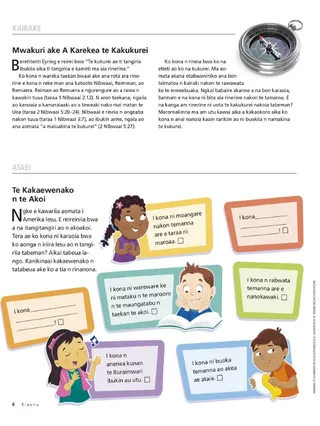 “N reken onimakinan te Uea; n reken te kantaninga bwa e na reke iroumi te maiu are akea tokina; n reken ana tangira te Atua ao n taainako inanomi, bwa kam aonga n tabekaki rake n te kabanea ni bong ao rin n ana rau” (Aramwa 13:28–29).
