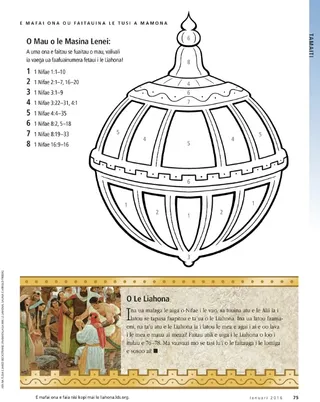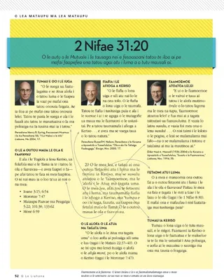 Ianuari 2016 Manatu mo Afiafi Faaleaiga O Le fiafia mo i Latou Tatou Te Alolofa I Ai Henry B. EyringO Le fiafia mo i Latou Tatou Te Alolofa I Ai Gaoioiga e Taitai Atu Ai i le Fiafia o le-lu’i-o le agalelei O Le Aiga: O Se Folafolaga i le Lalolagi Tusigāmanatu o le Konafesi o Oketopa 2015 Tusigāmanatu o le Konafesi o Oketopa 2015 Neil L. AndersenO Le Usisutai o se Filifiliga Thomas S. MonsonIa Faasusulu Atu Lou Malamalama O Le Faamanatuga Matou te Talitonu i le Faamaoni Kerry Hanson JensenO Lo tatou Puipuiga Sili mai Ponokalafi Brittany KingE Le o le Vavega sa Matou Mananao Ai Taryn TaylorTatalo i Ai Tala Fou o le Ekalesia Malumalu o loo Faagasolo Puipuia le Saolotoga o Tapuaiga Auai ma le Naunautai Elder Andersen i Ierusalema Richard A. HunterHoward W. Hunter: O Lo’u Tama, o le Perofeta Kevin S. HamiltonO Le Mana Faaliliu o le Tusi a Mamona Alicia Stanton and Natalie CampbellSau Mulimuli Mai ia te A’u: Aoao Atu Aoaoga Faavae Autu i le Fale Jeffrey R. HollandIloaina o le Aiga Atua O Leo o le Au Paia o Aso e Gata Ai José Evanildo Matias FernandesSa Ou Iloaina le Afioga a le Atua Juventa VezzaniSailia o Lo’u Ala i Puao o le Pogisa Henry (Hank) BrownUa E Iloa e Moni! Angie Nicholas, Texas, USAPe Na Lava Lo’u Suesueina? Autalavou Matutua Paul B. PieperO Mea Moni o le Olaga Faaletino Ua Faaalia Mai Autalavou Autu o le Mutuale 2016 Young Women and Young Men General PresidenciesAutu o le Mutuale 2016 Young Men General PresidencyFaamanuiaga o le Fetaomi Atu i Luma Young Women General PresidencyAgai i Luma 2 Nifae 31:20 Pepa Lautele o I Ai se Savali: Fetaomi Atu i Luma ma le Tumau ia Keriso Aoao e uiga i le Tama Faalelagi: O se Suesuega o Vaega Iloga Louisa HoeMoronae, o Lo’u Tina, ma se Lesona mo Lo’u Olaga O La Tatou Avanoa Neil L. AndersenPe Faapefea ona Fetaomi Atu i Luma Tuusao i le Mataupu O la’u uo ua tafetafea ese mai le Ekalesia ona ua ula i ai isi. O le a le mea e tatau ona ou faia? O le a le tulaga o le Ekalesia i taaloga faitupe? David DicksonIa Tuu Atu i le Atua e Avea ma Au Tusiata Tamaiti Amie Jane LeavittTutu Maualuga i Itiopia Marissa Widdison and Sonia QuenallataAtili Lelei le Faitau i Aso Uma Robert D. HalesE mafai faapefea ona ou maua sa’u molimau? Chi Hong (Sam) WongO Le Taulaga Anapogi a Uilifoti E Aoao Mai le Tusi a Mamona e uiga ia Iesu Keriso Sa Usiusitai ia Nifae E Mafai Ona Ou Faitauina le Tusi a Mamona O Se Malaga i le Vao E Mafai Ona Ou Filifilia le Mea Sa’o James E. TalmageO Le Faataoto i le Lulu o le Po Howard W. HunterMalamalamaaga