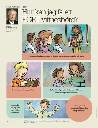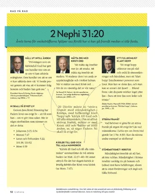 Januari 2016 Förslag till familjens hemafton Lycka för dem vi älskar Henry B. EyringLycka för dem vi älskar Handlingar som leder till lycka vänlighetsutmaningen Familjen: Ett tillkännagivande för världen Anteckningar från oktoberkonferensen 2015 Anteckningar från oktoberkonferensen 2015 Neil L. AndersenTro är ett val Thomas S. MonsonLåt ditt ljus lysa Sakramentet Vi tror på att vara positiva Kerry Hanson JensenVårt bästa försvar mot pornografi Brittany KingInte det underverk vi ville ha Taryn TaylorBe om saken Kyrkonytt Framsteg med tempelbyggande Försvara religionsfrihet Verka med iver Äldste Andersen i Jerusalem Richard A. HunterHoward W. Hunter: Min far, profeten Kevin S. HamiltonMormons boks kraft till omvändelse Alicia Stanton and Natalie CampbellKom och följ mig: Undervisa om grunderna i hemmet Jeffrey R. HollandKunskap om Gudomen Sista dagars heliga berättar José Evanildo Matias FernandesJag kände igen Guds ord Juventa VezzaniJag hittade vägen genom en mörk dimma Henry (Hank) BrownDu vet att den är sann! Angie Nicholas, Texas, USAVar mina studier tillräckliga? Unga vuxna Paul B. PieperUppenbarade sanningar om jordelivet Ungdomar Tema för veckoträffarna 2016 Young Women and Young Men General PresidenciesTema för veckoträffarna 2016 Young Men General PresidencyVälsignelser av att sträva framåt Young Women General PresidencyFortsätt framåt 2 Nephi 31:20 Affisch: Sträva framåt med ståndaktighet i Kristus Lära sig om vår himmelske Fader: Ett studium av episka proportioner Louisa HoeMoroni, mamma och en lärdom för livet Vår plats Neil L. AndersenHur man strävar framåt Rakt på sak Min vän har drivit bort från kyrkan därför att andra hånar den. Vad bör jag göra? Vad är kyrkans inställning till hasardspel? David DicksonLåt Gud vara din arkitekt Barn Amie Jane LeavittStår för sin tro i Etiopien Marissa Widdison and Sonia QuenallataLäste bättre för varje dag Robert D. HalesHur kan jag få ett eget vittnesbörd? Chi Hong (Sam) WongWilfords fasteoffer Mormons bok undervisar om Jesus Kristus Nephi var lydig Jag kan läsa Mormons bok En resa i vildmarken Jag kan välja det rätta James E. TalmageLiknelsen om uggleexpressen Howard W. HunterInsikter