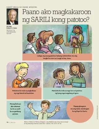 Enero 2016 Mga Ideya para sa Family Home Evening Kaligayahan para sa mga Mahal Natin sa Buhay Henry B. EyringKaligayahan para sa mga Mahal Natin sa Buhay Mga Kilos na Humahantong sa Kaligayahan ang-hamon-sa-kabaitan Ang Mag-anak: Isang Pagpapahayag sa Mundo Notebook ng Kumperensya ng Oktubre 2015 Notebook ng Kumperensya ng Oktubre 2015 Neil L. AndersenAng Pananampalataya ay Pinipili Thomas S. MonsonPaningningin ang Inyong Ilaw Ang Sakramento Naniniwala Tayo sa Pagiging Positibo Kerry Hanson JensenAng Pinakamainam Nating Panangga Laban sa Pornograpiya Brittany KingHindi ang Himalang Gusto Namin Taryn TaylorIpagdasal Mo Ito Mga Balita sa Simbahan Sumusulong ang mga Templo Pagtatanggol sa Kalayaang Pangrelihiyon Sabik sa Paggawa Si Elder Andersen sa Jerusalem Richard A. HunterHoward W. Hunter: Ang Aking Ama, ang Propeta Kevin S. HamiltonAng Kapangyarihang Magpabalik-loob ng Aklat ni Mormon Alicia Stanton and Natalie CampbellCome Follow Me [Pumarito Ka, Sumunod Ka sa Akin]: Pagtuturo ng mga Pangunahing Alituntunin sa Tahanan Jeffrey R. HollandMakilala ang Panguluhang Diyos Mga Tinig ng mga Banal sa mga Huling Araw José Evanildo Matias FernandesNakilala Ko ang Salita ng Diyos Juventa VezzaniPaghahanap ng Daan sa Abu-abo ng Kadiliman Henry (Hank) BrownAlam Mong Totoo Ito! Angie Nicholas, Texas, USASapat Na Ba ang Pag-aaral Ko? Mga Young Adult Paul B. PieperInihayag na mga Katotohanan ng Mortalidad Mga Kabataan Tema ng Mutuwal para sa 2016 Young Women and Young Men General PresidenciesTema ng Mutuwal para sa 2016 Young Men General PresidencyMga Pagpapalang Bunga ng Patuloy na Paglakad Young Women General PresidencyPagpapatuloy sa Paglakad 2 Nephi 31:20 Poster: Magpatuloy sa Paglakad nang May Katatagan kay Cristo Pagkilala sa Ama sa Langit: Isang Pag-aaral tungkol sa Isang Napakahalagang Paksa Louisa HoeSi Moroni, Si Inay, at Isang Aral sa Buhay Ko Ang Bahaging para sa Atin Neil L. AndersenPaano Magpatuloy sa Paglakad Tuwirang Sagot Ang kaibigan ko ay hindi na aktibo sa Simbahan dahil pinagtatawanan ito ng ibang mga tao. Ano ang dapat kong gawin? Ano ang pananaw ng Simbahan tungkol sa pagsusugal? David DicksonHayaang ang Diyos ang Maging Arkitekto Mo Mga Bata Amie Jane LeavittPaninindigan sa Ethiopia Marissa Widdison and Sonia QuenallataMas Mabilis na Pagbabasa Bawat Araw Robert D. HalesPaano ako magkakaroon ng sarili kong patotoo? Chi Hong (Sam) WongAng Handog-Ayuno ni Wilford Ang Aklat ni Mormon ay Nagtuturo tungkol kay Jesucristo Si Nephi ay Masunurin Maaari Kong Basahin ang Aklat ni Mormon Isang Paglalakbay sa Ilang Maaari Kong Piliin ang Tama James E. TalmageAng Talinghaga tungkol sa Owl Express Howard W. HunterMga Kabatiran
