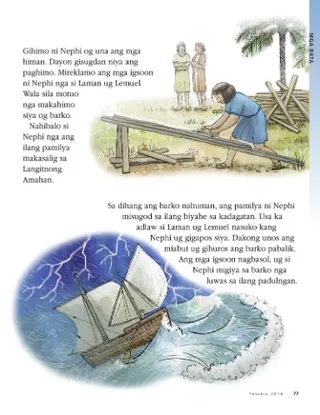 Sa katapusan ang pamilya ni Nephi midunggo sa baybayon sa usa ka bag-o nga yuta. Si Nephi ug ang iyang pamilya malipayon tungod kay nahibalo sila nga ang Langitnong Amahan midala kanila didto.