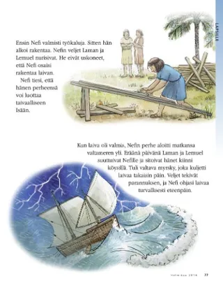 Mutta heidän matkansa ei vielä päättynyt. Taivaallinen Isä käski Nefiä rakentamaan laivan. Hän näytti Nefille, minkä näköinen siitä piti tulla. Hän lupasi, että laiva veisi heidät ihanaan, uuteen maahan.