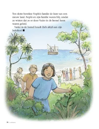Ten slotte bereikte Nephi’s familie de kust van een nieuw land. Nephi en zijn familie waren blij, omdat ze wisten dat ze er door Vader in de hemel heen waren geleid.