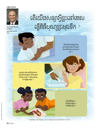 ចម្លើយមកពីសាវក តើយើងសន្យាអ្វីខ្លះនៅពេលធ្វើពិធីបុណ្យជ្រមុជទឹក ? ដោយ អែលឌើរ នែល អិល អាន់ឌើរសិន ក្នុងកូរ៉ុមនៃពួកសាវកដប់ពីរនាក់ ដកស្រង់ចេញពី « Thy Kingdom Come » Liahona ខែ ឧសភា ឆ្នាំ ២០១៥ ទំព័រ ១១៩–១២៣ ។ យើងលើកដាក់លើខ្លួនយើងនូវព្រះនាមនៃព្រះគ្រីស្ទ ហើយក្លាយជាសមាជិកនៃសាសនាចក្ររបស់ទ្រង់ ។ បន្ទាប់មក នៅពេលយើងទទួលទានសាក្រាម៉ង់រាល់សប្ដាហ៍ យើងសន្យាថាចងចាំព្រះយេស៊ូវ ។ យើងសន្យារក្សាបទបញ្ញត្តិរបស់ទ្រង់ ។ យើងជឿលើទ្រង់ ។ យើងថ្វាយបង្គំទ្រង់ ។ យើងធ្វើតាមទ្រង់ ។