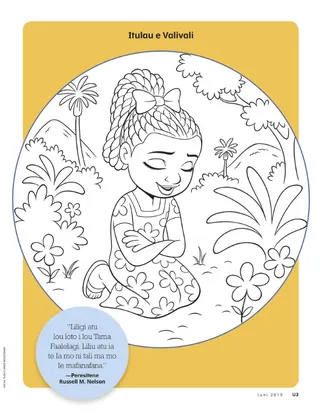 “Liligi atu lou loto i lou Tama Faalelagi. Liliu atu ia te Ia mo ni tali ma mo le mafanafana.” —Peresitene Russell M. Nelson