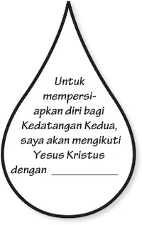 Mendorong penerapan: Gambarlah sebuah pelita di papan tulis. Bahaslah bagaimana mengikuti Yesus Kristus dengan melakukan hal-hal yang baik setiap hari seperti menyimpan minyak dalam pelita kita. Mintalah anak-anak menyebutkan beberapa cara mereka dapat mengikuti Yesus Kristus seperti melayani sesama, membayar persepuluhan, dan berdoa. Jelaskan bahwa inilah hal-hal yang perlu mereka lakukan secara pribadi; orang lain tidak dapat melakukan hal-hal ini bagi mereka. Berilah setiap anak selembar kertas yang dipotong berbentuk tetesan-tetesan besar minyak. Mintalah mereka (atau guru mereka) menuliskan “Untuk mempersiapkan diri bagi Kedatangan Kedua, saya akan mengikuti Yesus Kristus dengan ” di kertas mereka. Mintalah anak-anak mengisi bagian yang kosong atau membuat gambar tentang sesuatu yang dapat mereka lakukan untuk mempersiapkan diri bagi Kedatangan Kedua. Imbaulah anak-anak untuk membawa pulang kertas mereka dan membagikan apa yang telah mereka pelajari kepada keluarga mereka.