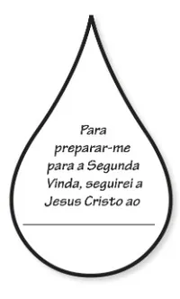 Incentivar a aplicação: Desenhe uma lâmpada no quadro. Discuta como seguir a Jesus Cristo fazendo coisas boas todos os dias se assemelha a pôr óleo em nossas lâmpadas. Peça às crianças que enumerem algumas maneiras pelas quais podem seguir a Jesus Cristo, tais como servir ao próximo, pagar o dízimo e orar. Explique-lhes que essas são coisas que é preciso fazer individualmente; os outros não podem fazê-las por nós. Dê a cada criança uma folha de papel recortada na forma de uma grande gota de óleo. Peça às crianças (ou a seus professores) que escrevam: “Para preparar-me para a Segunda Vinda, seguirei a Jesus Cristo ao ” em suas folhas. Peça às crianças que preencham a lacuna ou façam um desenho de algo que podem fazer para preparar-se para a Segunda Vinda. Incentive-as a levar suas folhas para casa e contar aos familiares o que aprenderam.