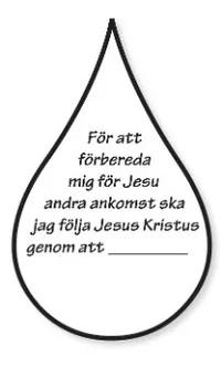 Hjälp barnen tillämpa läran: Rita en oljelampa på tavlan. Samtala om att när vi följer Jesus Kristus genom att göra sådant som är bra varje dag så är det som att hälla olja i vår lampa. Låt barnen nämna några sätt som de kan följa Jesus Kristus på, till exempel genom att tjäna andra, betala tionde och be. Förklara att det här är sådant som de måste göra själva. Ingen annan kan göra det åt dem. Ge varje barn en papperslapp i form av en stor oljedroppe. Låt dem (eller deras lärare) skriva ”För att förbereda mig för Jesu andra ankomst ska jag följa Jesus Kristus genom att ” på droppen. Låt barnen fylla i den tomma raden eller rita en bild av något de kan göra för att förbereda sig för Jesu andra ankomst. Uppmuntra barnen att ta med sig dropparna hem och berätta vad de har lärt sig för sin familj.