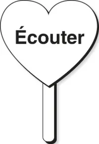 Avant de chanter « Si j’écoute avec le cœur », donnez à chaque enfant un cœur en papier et demandez-lui d’écrire « Écouter » d’un côté et « Entendre » de l’autre côté. Expliquez que ces mots sont répétés plusieurs fois dans le chant. Demandez aux enfants de montrer le bon côté du cœur quand il chante le mot.