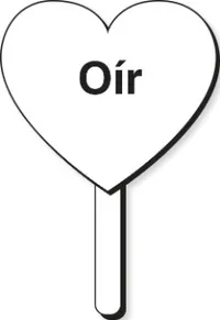 Antes de cantar “Si escucho con el corazón”, entregue a cada niño un corazón de papel y pídales que escriban las palabras “Escuchar” en un lado y “Oír” en el otro. Explique que estas palabras se repiten varias veces en la canción. Pida a los niños que muestren el lado correcto del corazón cuando canten esa palabra.