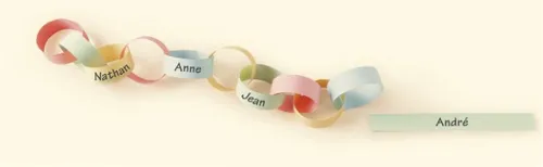 Favoriser la mise en pratique : Recommandez aux enfants et aux instructeurs de prendre l’habitude d’étudier les Écritures régulièrement. Expliquez que chaque semaine, les enfants qui ont lu ou ont écouté les Écritures pourront écrire leur nom sur un morceau de papier et l’ajouter à une chaîne en papier. Dites-leur qu’au fur et à mesure que la chaîne s’allonge, leur connaissance des Écritures augmente aussi. Rangez la chaîne dans une boîte au « trésor » (qui peut aussi être utilisée pour expliquer le verbe « amasser » dans l’activité ci-dessus). Demandez aux enfants de parler de leur objectif d’étude des Écritures à leur famille.
