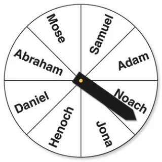 Fördern Sie das Verständnis: Basteln Sie nach diesem Muster ein „Prophetenrad“. Teilen Sie den Kreis in acht Abschnitte; auf jedem Abschnitt steht der Name eines Propheten aus dem Lied „Folg dem Propheten!“ (LfK, Seite 58). Bitten Sie ein Kind, das Rad zu drehen. Erzählen Sie eine kurze Geschichte über den Propheten, auf den der Pfeil zeigt (Sie können dazu die Schriftstellenangaben auf Seite 59 im LfK verwenden). Singen Sie dann die Strophe über diesen Propheten. Bitten Sie ein weiteres Kind, an dem Rad zu drehen. Wiederholen Sie die Aktivität, solange es die Zeit erlaubt.