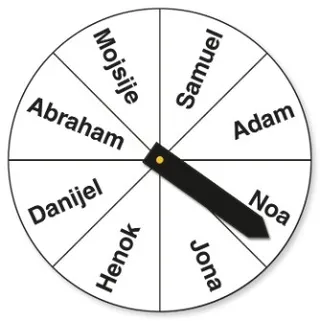 Potaknite razumijevanje: Napravite »Kolo proroka« kao što je prikazano ovdje. Podijelite krug na osam dijelova, svaki s imenom proroka iz pjesme »Proroka slijedi« (DP, 36–37). Pozovite dijete da zavrti kolo. Ispričajte kratku priču o proroku prikazanom na kolu (koristite reference iz Svetih pisama iz DP, 37 za ideje). Zatim otpjevajte stih o tom proroku iz »Proroka slijedi«. Pozovite drugo dijete da zavrti kolo i ponovite aktivnost prema dostupnom vremenu.