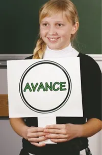 Promueva el entendimiento: Prepare señales de tránsito sencillas que digan “Pare”, “Despacio” y “Avance”. Elija a tres niños para que sostengan las señales y dígales que levanten las señales cuando el líder de música les toque el hombro. Explique a los niños que la señal “Avance” significa comenzar a cantar, la señal “Pare” significa parar de cantar y la señal “Despacio” significa cantar lentamente. Haga que la(el) líder de música dirija a los niños en la canción “Defiende el bien” (CN, pág. 81).