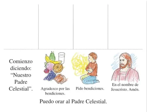 Promueva el entendimiento: Ayude a los niños a comprender que podemos orar en silencio al Padre Celestial en nuestro corazón, en cualquier momento y en cualquier lugar y que debemos agradecerle por nuestras bendiciones y pedirle Su ayuda. Escriba las siguientes referencias de pasajes de las Escrituras en la pizarra: 3 Nefi 18:19; 3 Nefi 19:6–8; 3 Nefi 18:15. Además escriba las palabras cómo y cuándo en la pizarra. Invite a los niños a que busquen cada Escritura y analicen lo que cada una nos enseña en cuanto a cómo y cuándo debemos orar. Cuente el relato de Alma y Amulek cuando enseñaron a los Zoramitas a orar (véase Alma 31; 34:17–27; véase también el manual Primaria 4, lección 21). Quizás desee pedir a algunos niños que vayan dramatizando mientras usted cuenta el relato.