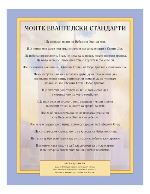 Програма за времето за споделяне 2016 г.: Знам, че Писанията са истинни Напътствия за времето за споделяне и представянето на децата по време на събранието за причастието Януари: Писанията са Божието слово Февруари: Писанията учат за плана на Небесния Отец Март: Небесният Отец ни говори чрез Своите пророци Април: Исус Христос е мой Спасител и Изкупител Май: Църквата на Исус Христос е възстановена Юни: Първите принципи и обреди на Евангелието ми дават възможност отново да живея с Бог Юли: Храмът е дом Божий Август: Моето тяло е храм Божий Септември: Евангелието ще бъде проповядвано по целия свят Октомври: Молитвата е благоговейно общуване между Бог и мен Ноември: Благоговението е обич и уважение към Бог Декември: Писанията ме учат за раждането и Второто пришествие на Спасителя. Как да използваме музика в НУД Когато слушам със сърцето Преподаване на деца с недъзи