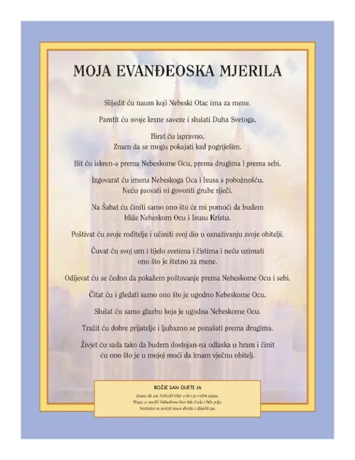 Kratak pregled zajedničkih aktivnosti za 2016. godinu: Znam da su Sveta pisma istinita Upute za zajedničke aktivnosti i dječji prikaz na sakramentalnom sastanku Siječanj: Sveta pisma su riječ Božja Veljača: Sveta pisma podučavaju o naumu Nebeskog Oca Ožujak: Nebeski Otac nam govori kroz svoje proroke Travanj: Isus Krist je moj Spasitelj i Otkupitelj Svibanj: Crkva Isusa Krista je obnovljena Lipanj: Prva načela i uredbe evanđelja omogućuju mi da ponovno živim s Bogom Srpanj: Hram je Dom Božji Kolovoz: Moje tijelo je hram Božji Rujan: Evanđelje će biti propovijedano po cijelome svijetu Listopad: Molitva je pobožna komunikacija između Boga i mene Studeni: Pobožnost je ljubav i poštovanje za Boga Prosinac: Sveta pisma me podučavaju o Spasiteljevom rođenju i Drugom dolasku Kako koristiti glazbu u Maloj školi Ja Spasiteljev čujem glas Podučavanje djece s posebnim potrebama