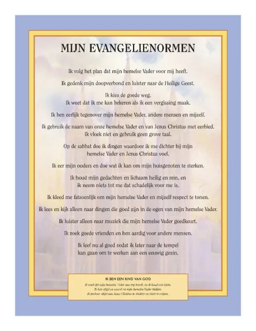 Overzicht participatieperiode 2016: Ik weet dat de Schriften waar zijn Instructies voor de participatieperiode en het kinderprogramma in de avondmaalsdienst Januari: De Schriften zijn het woord van God Februari: Het plan van onze hemelse Vader wordt in de Schriften uitgelegd Maart: Onze hemelse Vader spreekt tot ons door zijn profeten April: Jezus Christus is mijn Heiland en Verlosser Mei: De Kerk van Jezus Christus is hersteld Juni: Door de eerste beginselen en verordeningen van het evangelie is het mogelijk om bij God terug te keren Juli: De tempel is een huis van God. Augustus: Mijn lichaam is een tempel van God September: Het evangelie zal in de hele wereld worden gepredikt Oktober: Het gebed is eerbiedige communicatie tussen God en mij November: Eerbied is liefde en respect voor God December: Uit de Schriften leer ik over de geboorte en wederkomst van de Heiland Hoe muziek in het jeugdwerk te gebruiken Als ik met mijn hart luister Kinderen met handicaps lesgeven