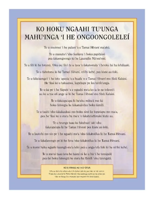 Ko e Fokotuʻutuʻu ki he Taimi Feʻinasiʻaki ki he 2016: ʻOku ou ʻilo ʻoku moʻoni ʻa e Ngaahi Folofolá Ngaahi Fakahinohino ki he Taimi Feʻinasiʻakí mo e Polokalama ʻa e Fānaú ʻi he Houalotu Sākalamēnití Sānuali: Ko e Ngaahi Folofolá Ko e Folofola ia ʻa e ʻOtuá Fēpueli: ʻOku akoʻi mai ʻe he ngaahi Folofolá ʻa e Palani ʻa e Tamai Hēvaní. Māʻasi: ʻOku Folofola mai ʻa e Tamai Hēvaní Kiate Kitautolu ʻo fakafou mai ʻi Heʻene Kau Palōfitá. ʻEpeleli: Ko Hoku Fakamoʻuí mo Hoku Huhuʻí ʻa Sīsū Kalaisi Mē: Kuo toe Fakafoki mai ʻa e Siasi ʻo Sīsū Kalaisi. Sune: ʻOku lava ʻe he ngaahi ʻUluaki Tefitoʻi Moʻoni mo e Ngaahi Ouau ʻo e Ongoongoleleí ‘o ‘omai ha Faingamālie Kiate Au Ke u toe Nofo Fakataha ai mo e ʻOtua. Siulai: Ko e Temipalé ko e Fale ia ʻo e ʻOtuá ʻAokosi: Ko hoku Sinó ko ha Temipale ia ʻo e ʻOtuá Sepitema: ʻE Malangaʻi ʻa e Ongoongoleleí ʻi he Māmaní Kotoa ʻOkatopa: Ko e Lotú ko ha Fetuʻutaki ʻApasia ia ʻi he vahaʻa ʻo e ʻOtuá pea mo Au Nōvema: Ko e Loto-ʻapasiá ko e ʻOfa mo e Fakaʻapaʻapa ki he ʻOtuá Tīsema: ʻOku Akoʻi Au ʻe he Ngaahi Folofolá fekauʻaki mo e Aloʻi ʻo e Fakamoʻuí pea mo e Hāʻele ʻAngauá. Founga hono Fakaʻaongaʻi ʻo e Mūsiká ʻi he Palaimelí Fanongo ʻaki Hoku Lotó Akoʻi ʻo e Fānau Faingataʻaʻia Fakaesinó