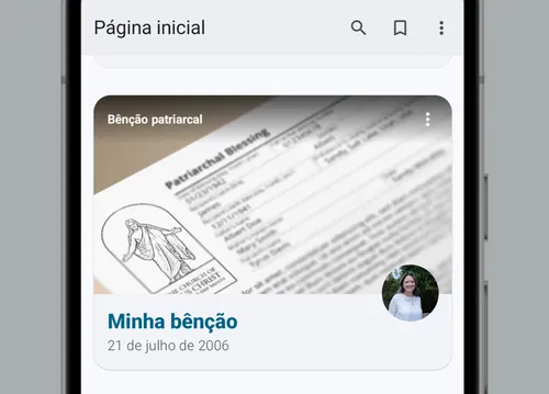 Os membros podem acessar sua bênção patriarcal na Página inicial do aplicativo Biblioteca do Evangelho quando entram no sistema usando sua conta da Igreja.