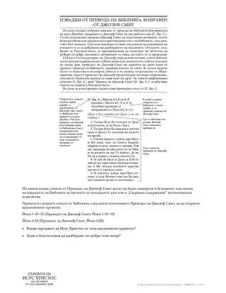 Освен в Скъпоценен бисер, знаете ли къде още да намерите преводи на Библията, направени от Джозеф Смит? Много от тях се намират в Извадки от превода на Библията, направен от Джозеф Смит в задната част на Писанията или в Преводът на Джозеф Смит, намиращ се в раздела Помощни материали за изучаване в приложението Gospel Library. Научете се как да използвате тези източници, като разгледате примера и обяснението по-долу.