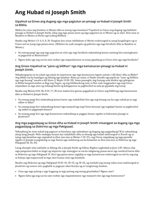 Gipahiuli sa Ginoo ang dugang nga mga pagtulun-an pinaagi sa Hubad ni Joseph Smith sa Biblia.