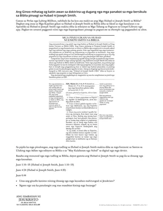 Ang Ginoo mihatag og katin-awan sa doktrina ug dugang nga mga panabot sa mga bersikulo sa Biblia pinaagi sa Hubad ni Joseph Smith.